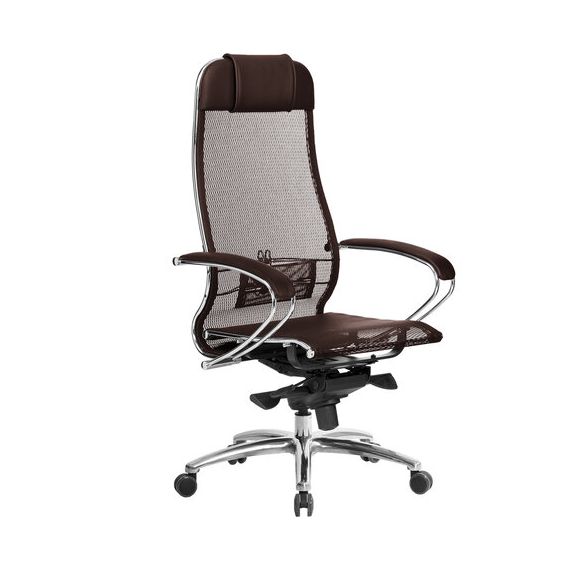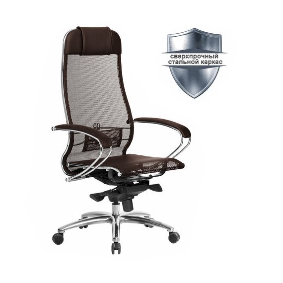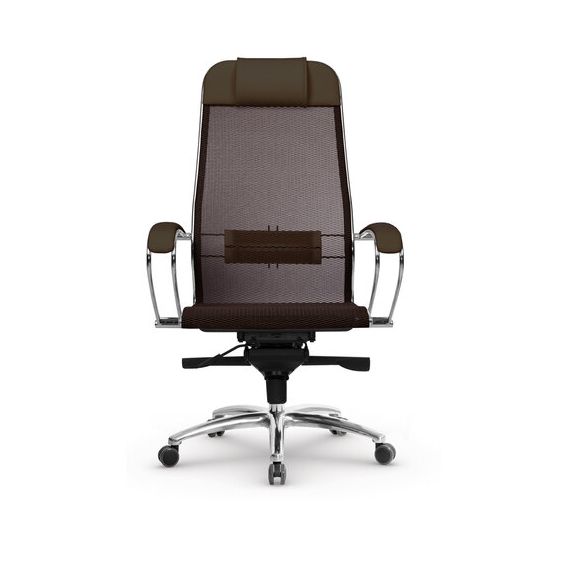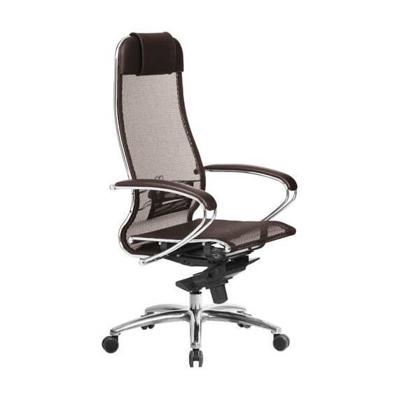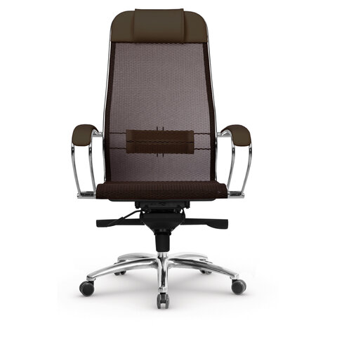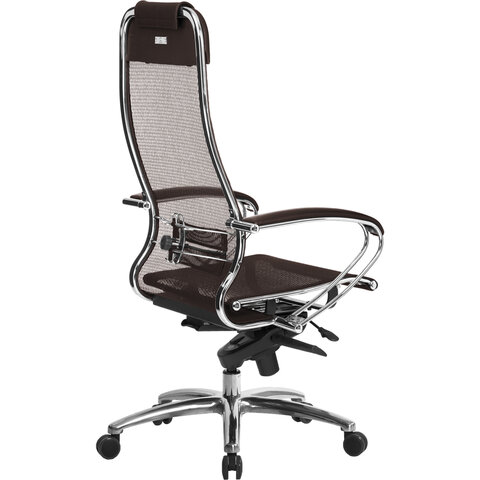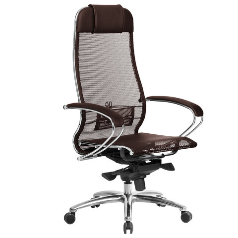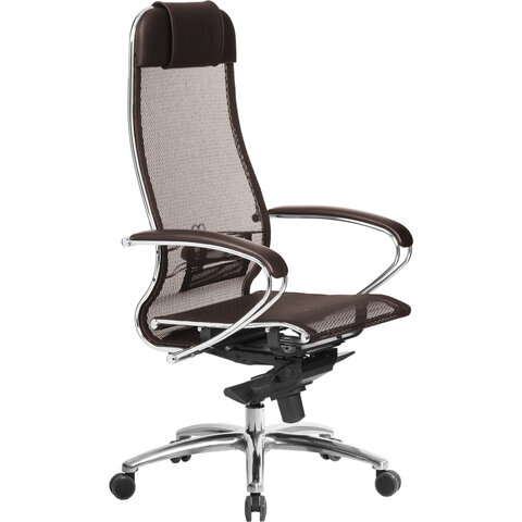 Кресло офисное МЕТТА "SAMURAI" S-1, сверхпрочная ткань-сетка, темно-коричневое
