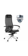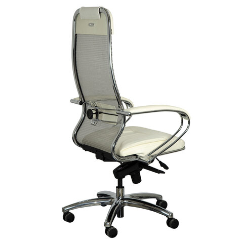 Кресло офисное МЕТТА "SAMURAI" SL-1, сверхпрочная ткань-сетка/экокожа, бежевое