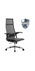 Спинка эргономичной формы из сверхпрочной сетчатой ткани армированной арамидным волокном.