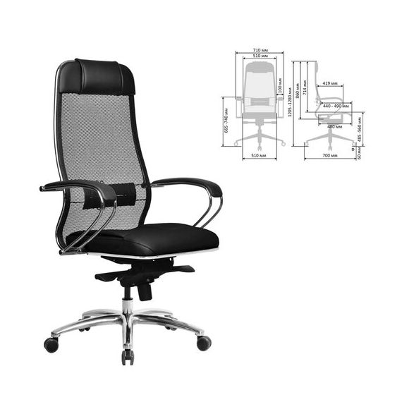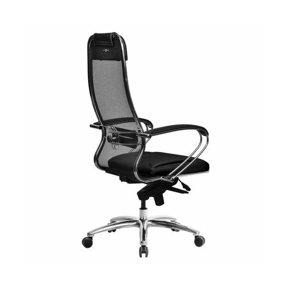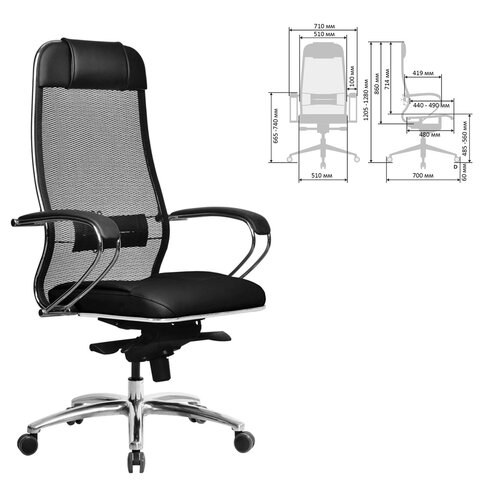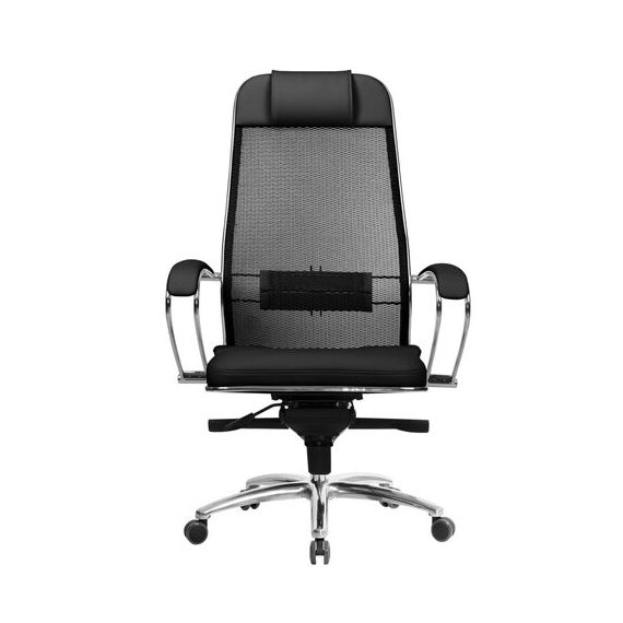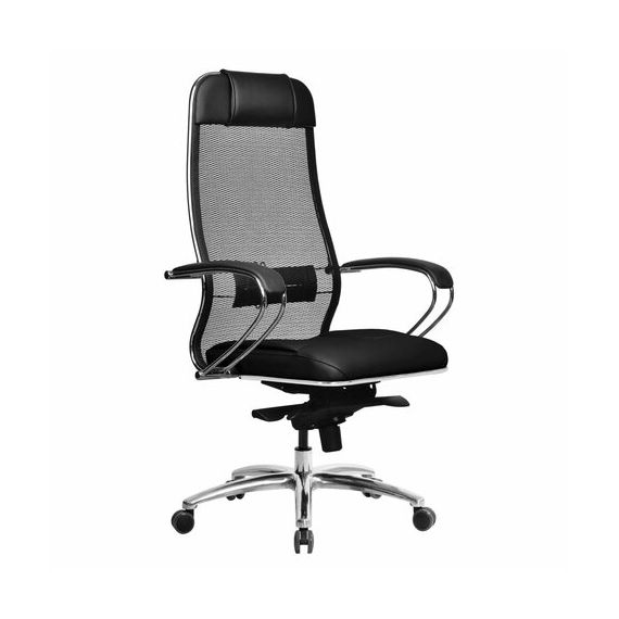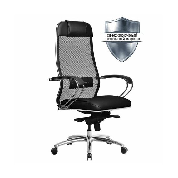 Кресло офисное МЕТТА "SAMURAI" SL-1, сверхпрочная ткань-сетка/экокожа, черное