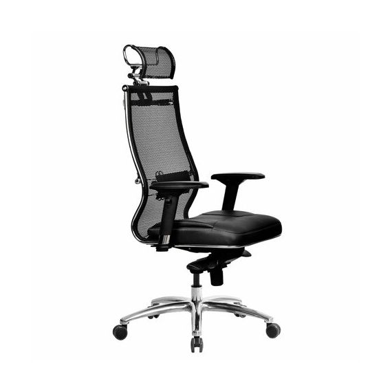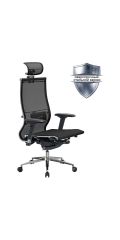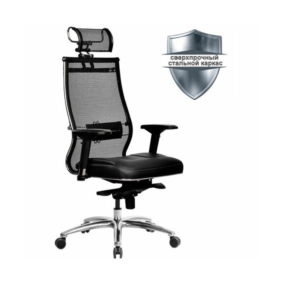 Кресло офисное МЕТТА "SAMURAI" SL-3, с подголовником, сверхпрочная ткань-сетка/экокожа, черное