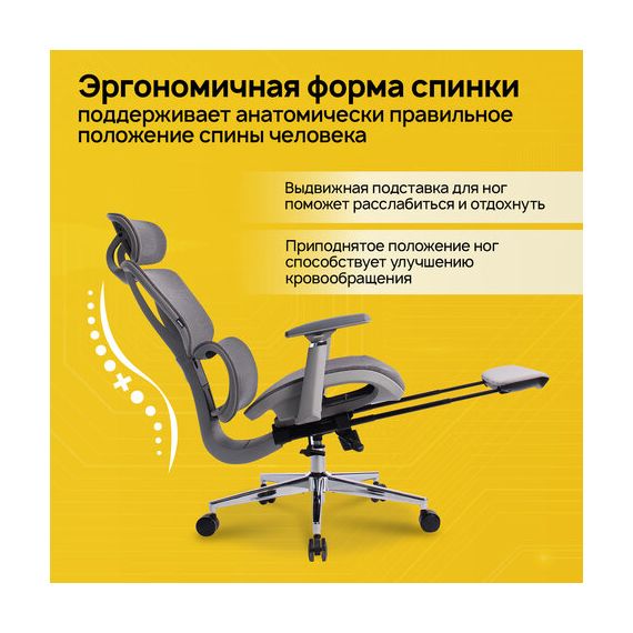 Кресло BRABIX PREMIUM "Evolution ER-700", подножка, слайдер, синхромеханизм, сетка, серое, 532948