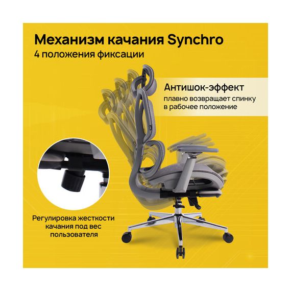 Синхромеханизм решает сразу несколько основных эргономических задач по обеспечению комфорта и сохранению здоровья при длительной сидячей работе: