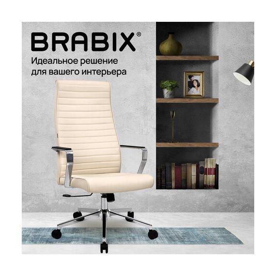 Кресло BRABIX PREMIUM "Solo EX-730", алюминий, хром, экокожа, бежевое, 532937