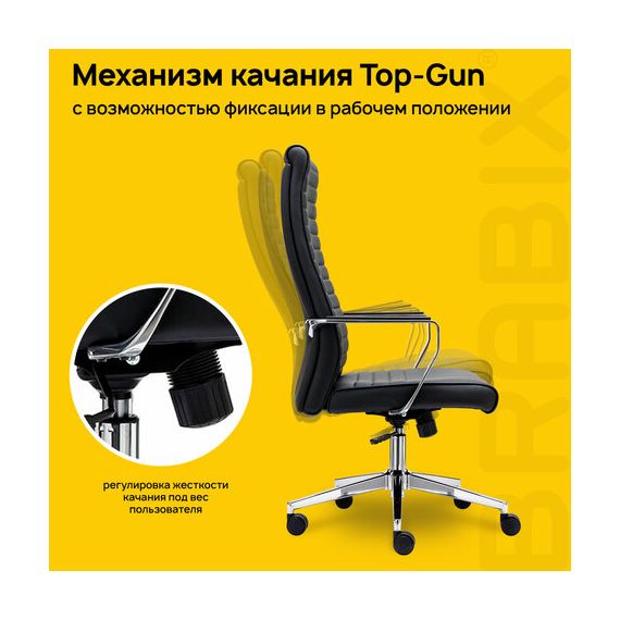 Надежный механизм качания "Top Gun" обеспечивает хорошую поддержку спины и поясницы за счет возможности свободного качания с фиксацией в одном рабочем положении. Также возможна регулировка жесткости качания под вес сидящего.