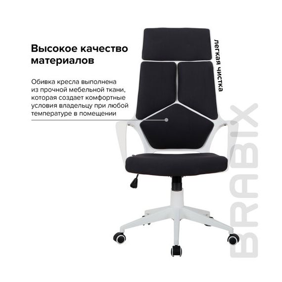 Кресло офисное BRABIX PREMIUM "Prime EX-515", пластик белый, ткань, черное, 531812