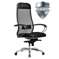 Сверхпрочный стальной каркас. Спинка высокая, эргономичной формы с ярко выраженной поясничной поддержкой. Эргогиб, как у кресел SAMURAI. Спинка имеет стальной регулируемый поясничный подпор. Спинка снабжена мягким комфортным подголовником. Уникальная форма передней части сиденья исключает...