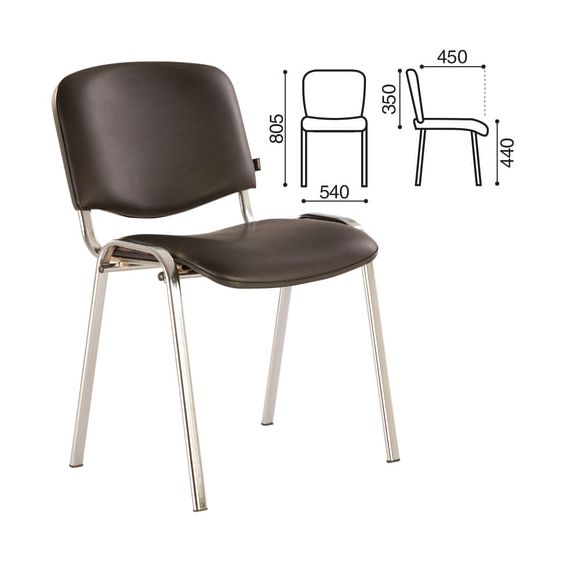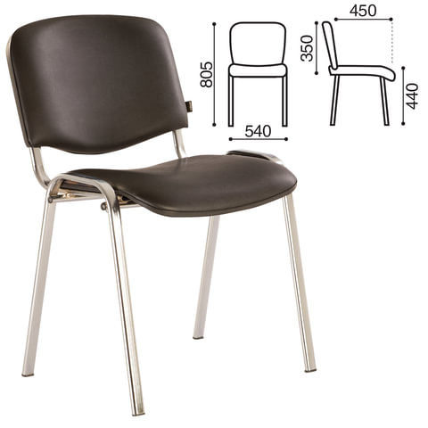 Стул для персонала и посетителей BRABIX "Iso CF-001", хромированный каркас, кожзам черный, 531424