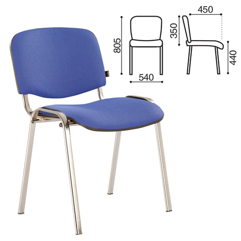 Стул для персонала и посетителей BRABIX "Iso CF-001", хромированный каркас, ткань синяя с черным, 531422