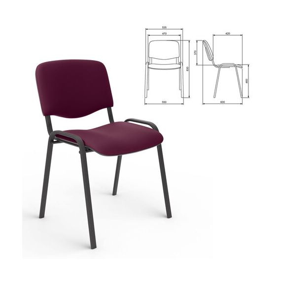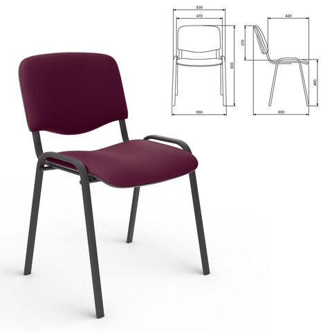 Стул для персонала и посетителей "ИЗО", черный каркас, ткань бордовая, В-20/С-13