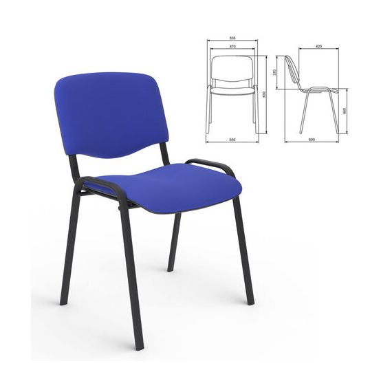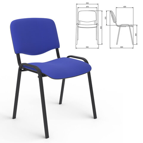 Стул для персонала и посетителей "ИЗО", черный каркас, ткань черно-синяя, В-12/С-14