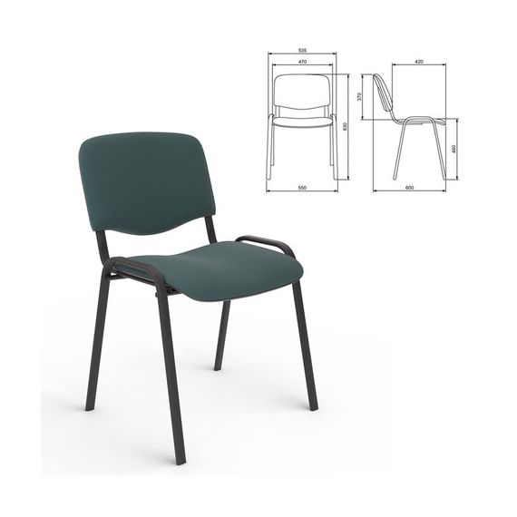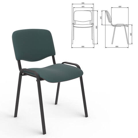 Стул для персонала и посетителей "ИЗО", черный каркас, ткань черно-зеленая, В-21/С-33