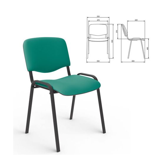 Стул для персонала и посетителей "ИЗО", черный каркас, ткань зеленая, В-27/С-34