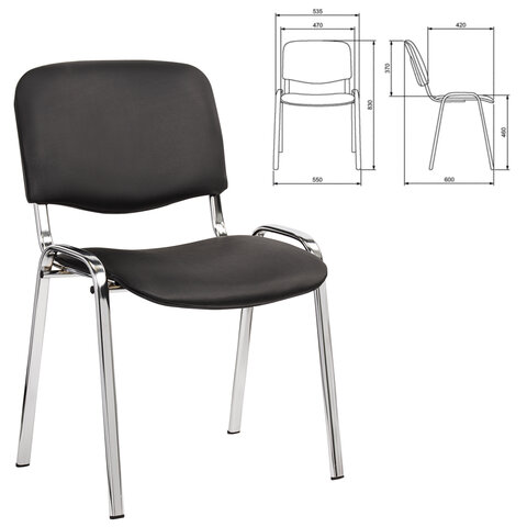 Стул для персонала и посетителей "ИЗО", хромированный каркас, кожзам черный Z-11, К3