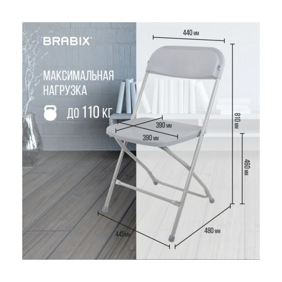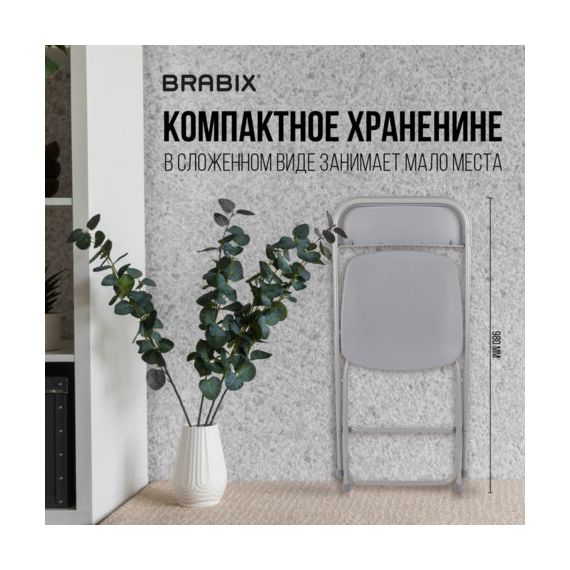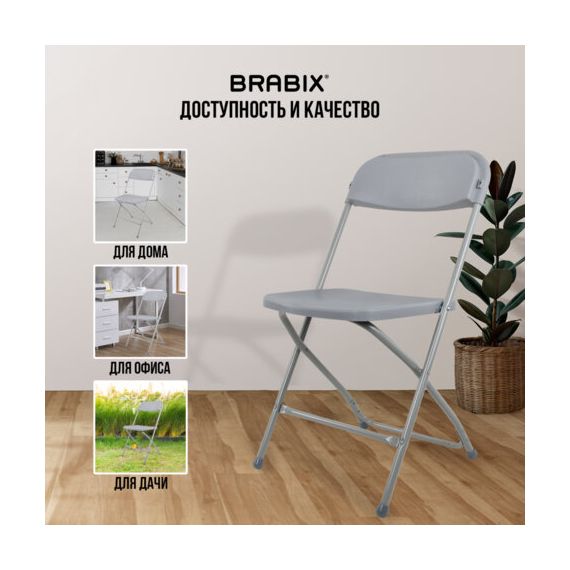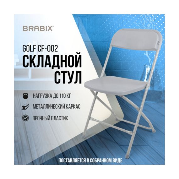 Стул складной BRABIX "Golf CF-002", серый каркас, пластик серый, 531564