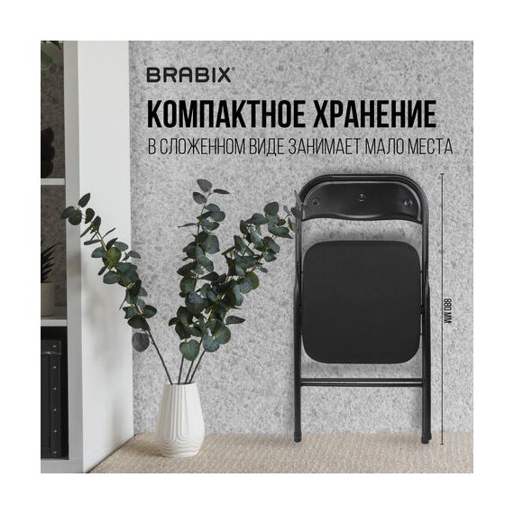 Стул складной BRABIX "Golf CF-007", чёрный каркас, чёрная ткань, 532892