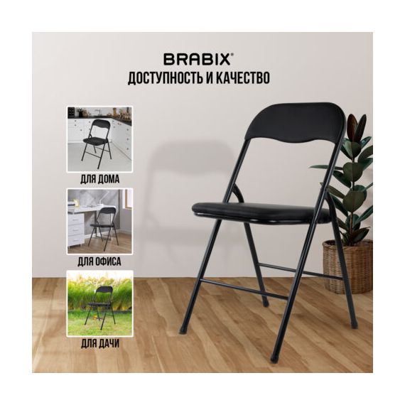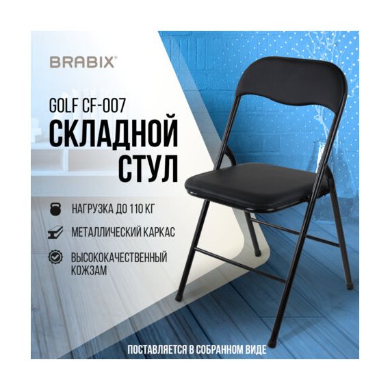Стул складной BRABIX "Golf CF-007", черный каркас, кожзам черный, 531565