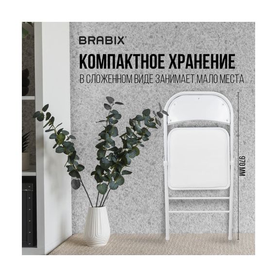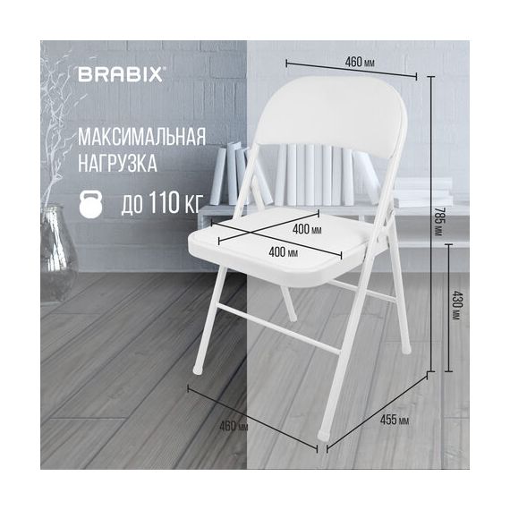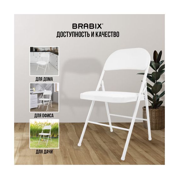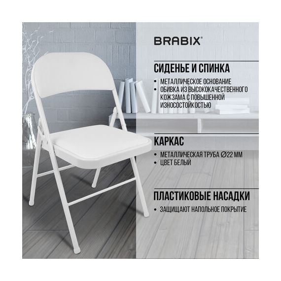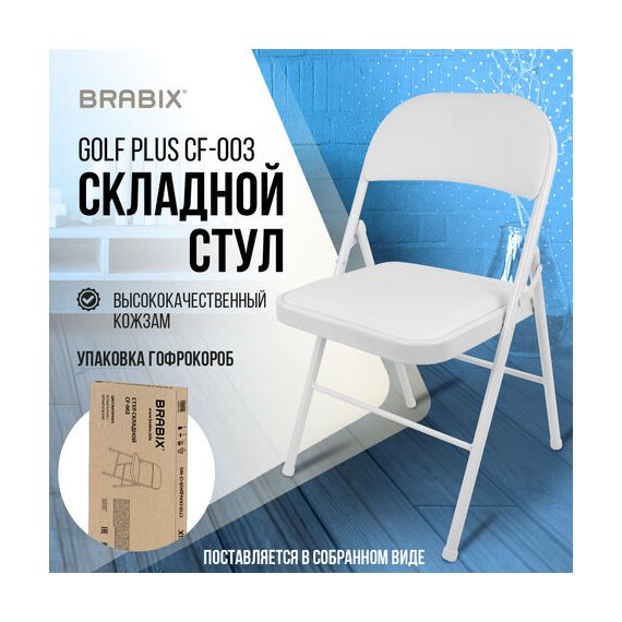 Стул складной BRABIX "Golf Plus CF-003 КОМФОРТ", белый каркас, кожзам белый, В КОРОБЕ, 533028
