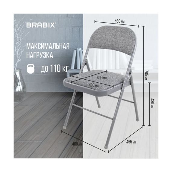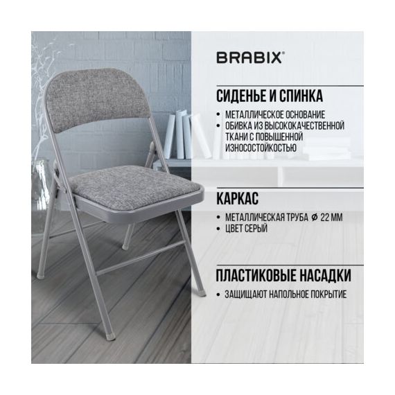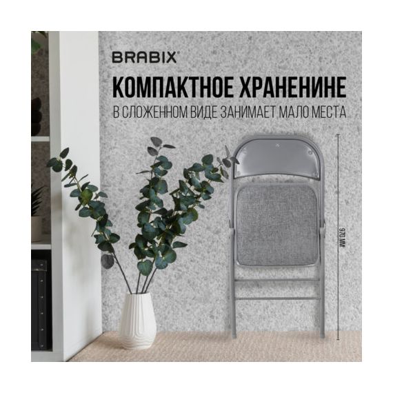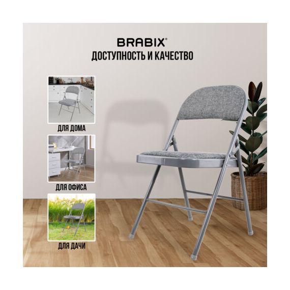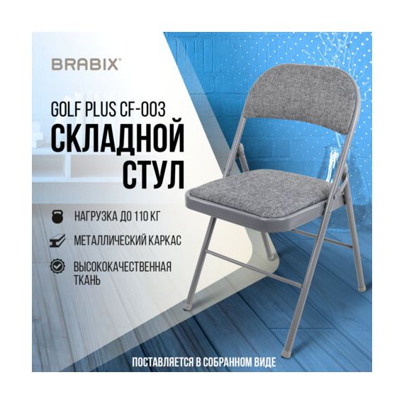 Стул складной BRABIX "Golf Plus CF-003 КОМФОРТ", серый каркас, серая ткань, 532890