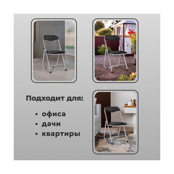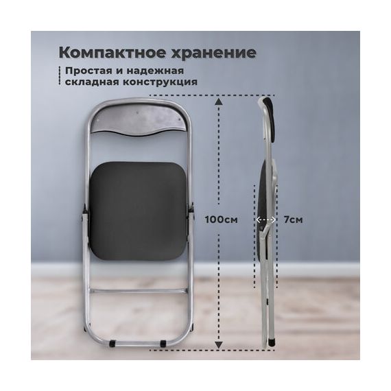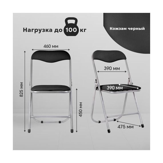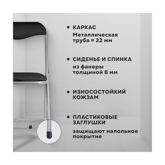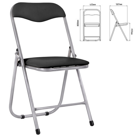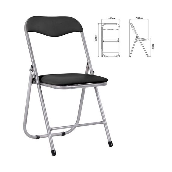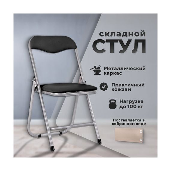Стул складной для дома и офиса РС04, серебристый каркас, кожзам черный