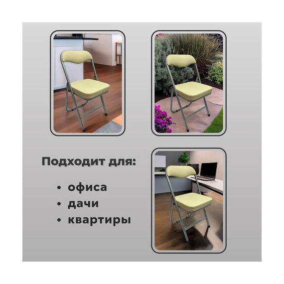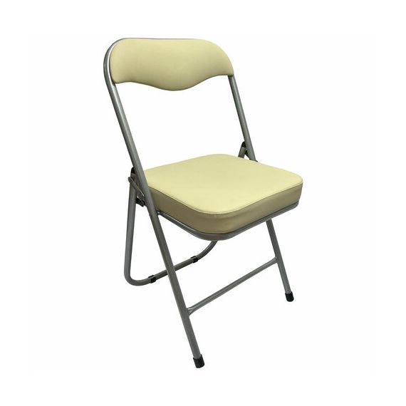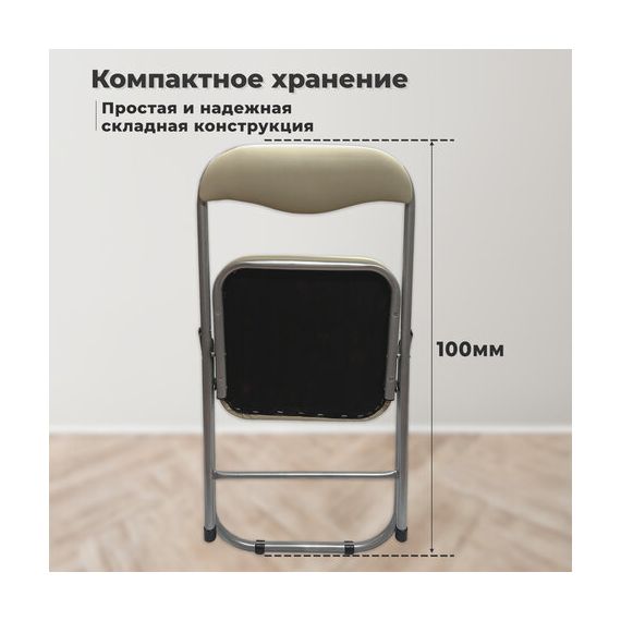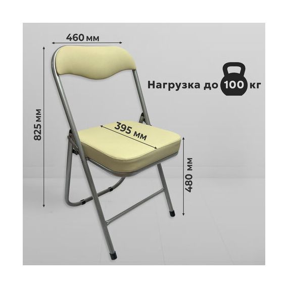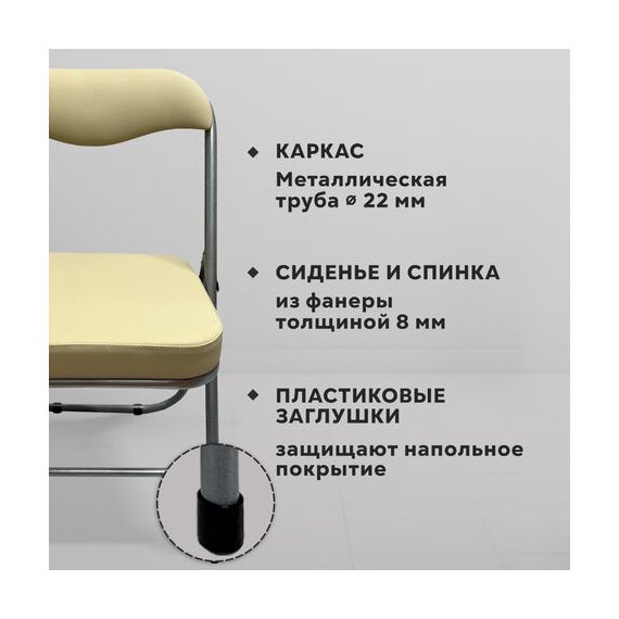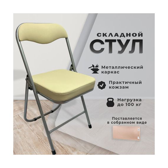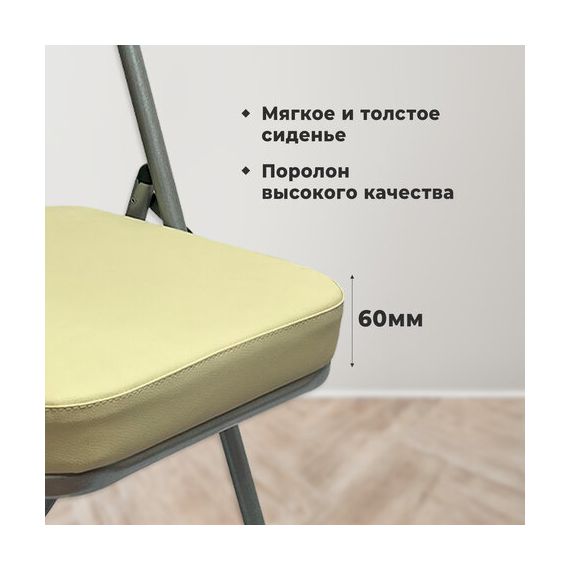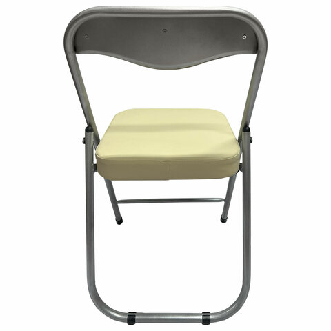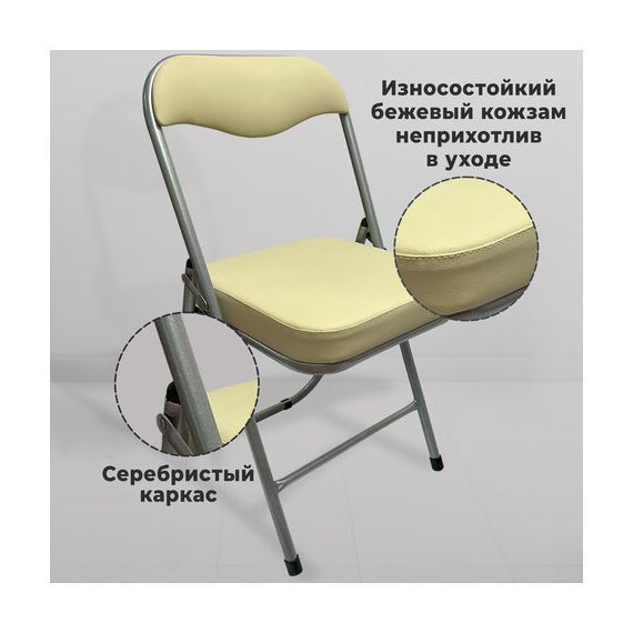 Стул складной для дома и офиса РС04К комфорт, серебристый каркас, кожзам бежевый