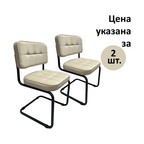 Стулья КОМПЛЕКТ 2 шт., РС14М, черный каркас, велюр, бежевый, разобранные