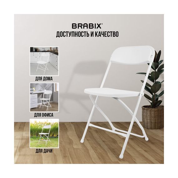 Стулья складные BRABIX "Golf CF-002", КОМПЛЕКТ 4 шт., белый каркас, пластик белый, 533031