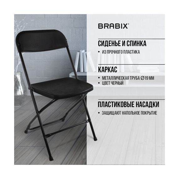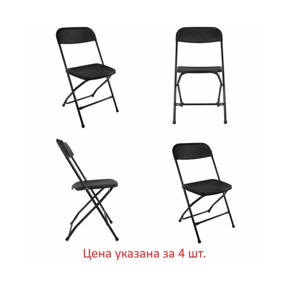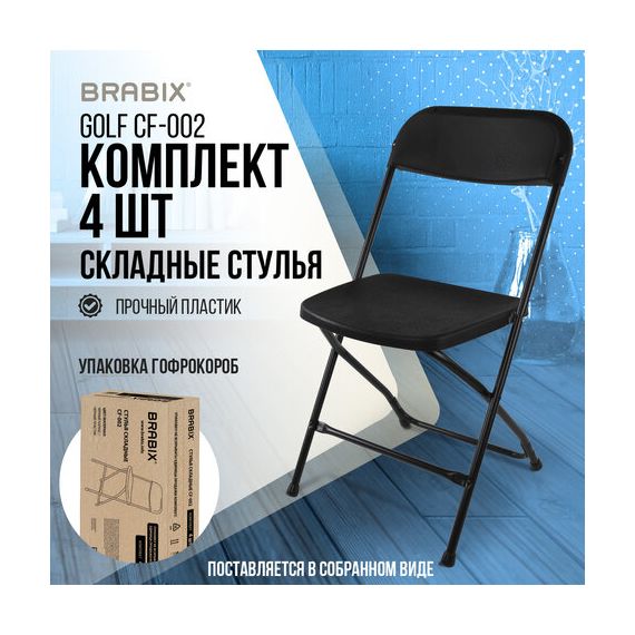 Стулья складные BRABIX "Golf CF-002", КОМПЛЕКТ 4 шт., черный каркас, пластик черный, 533030