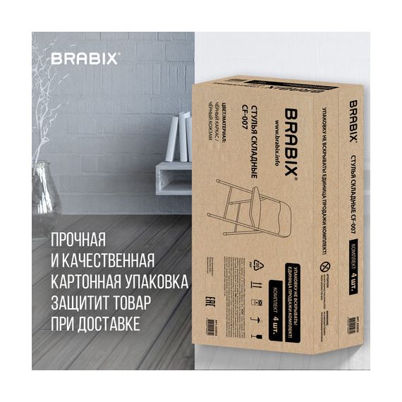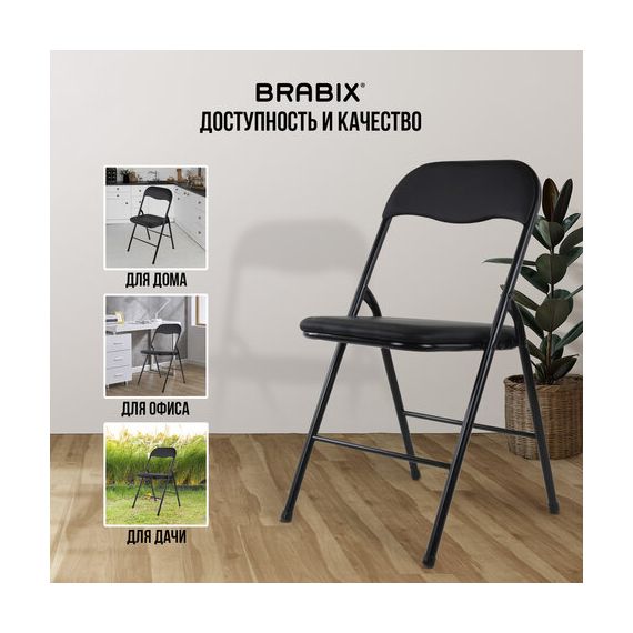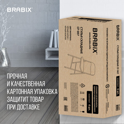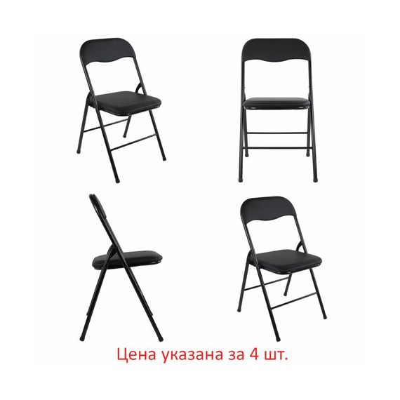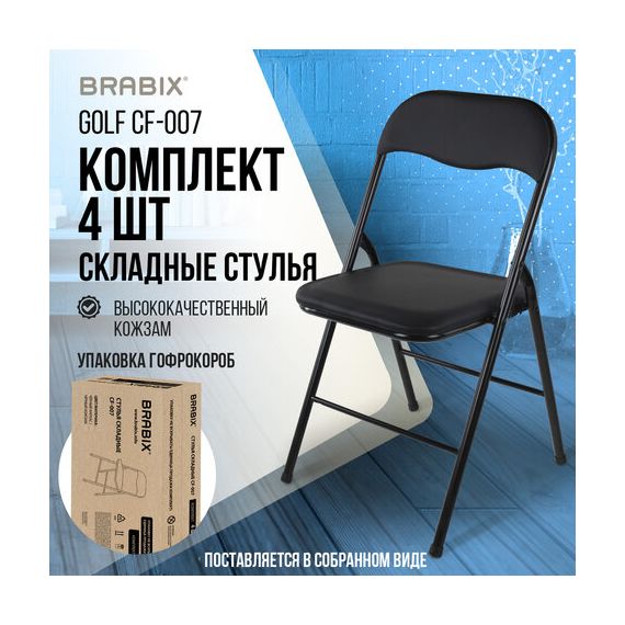 Стулья складные BRABIX "Golf CF-007", КОМПЛЕКТ 4 шт., черный каркас, кожзам черный, 533032