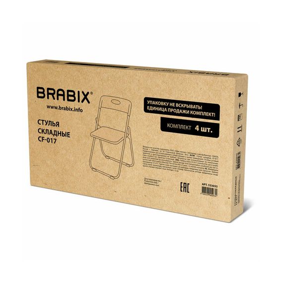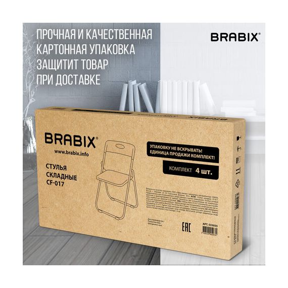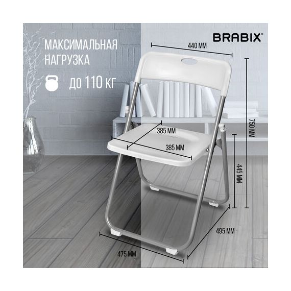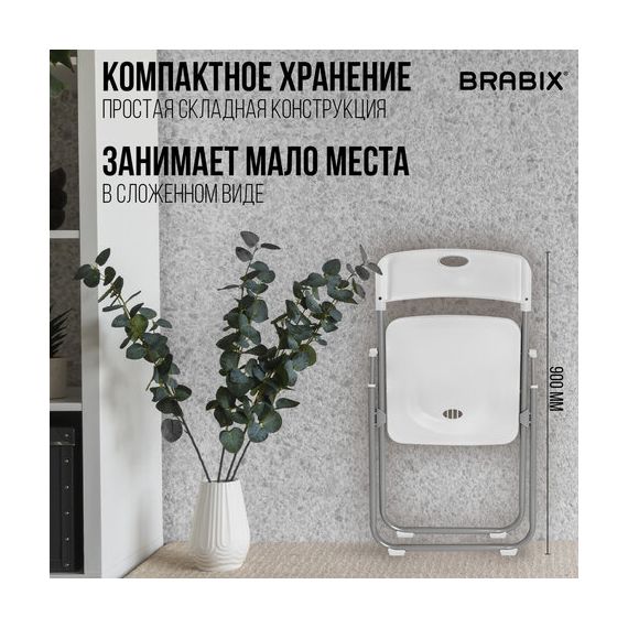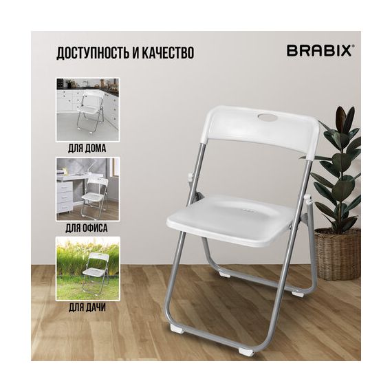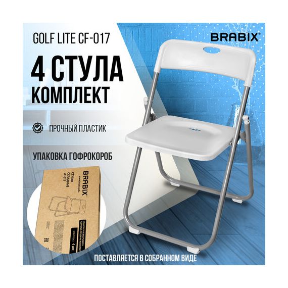 Стулья складные BRABIX "Golf Lite CF-017", КОМПЛЕКТ 4 шт., серебристый каркас, пластик, белый, 533035