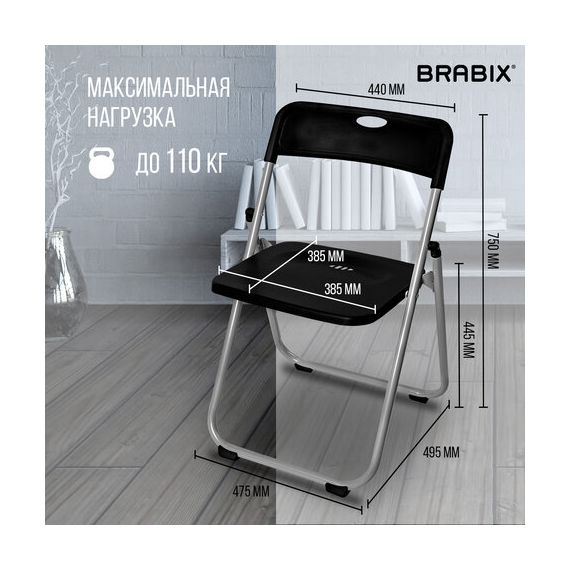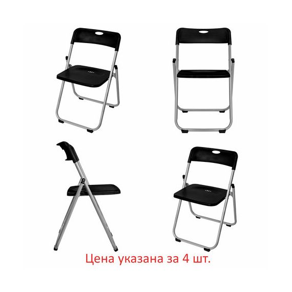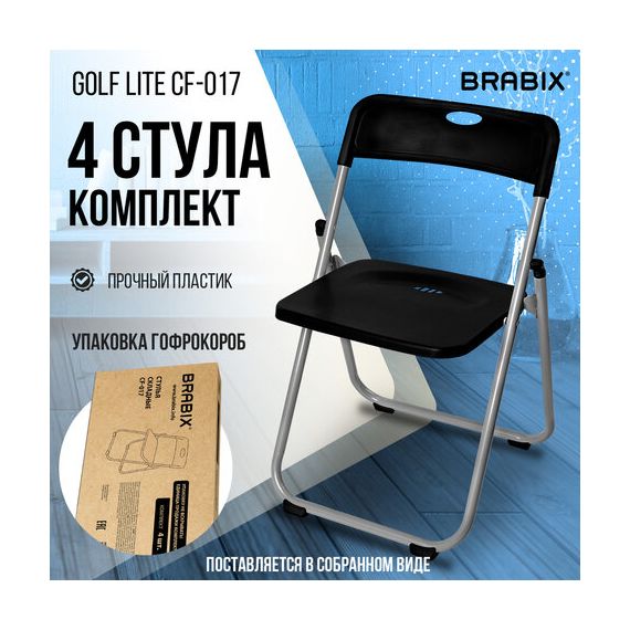 Стулья складные BRABIX "Golf Lite CF-017", КОМПЛЕКТ 4 шт., серебристый каркас, пластик, чёрный, 533034