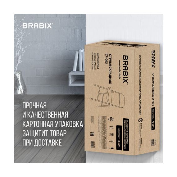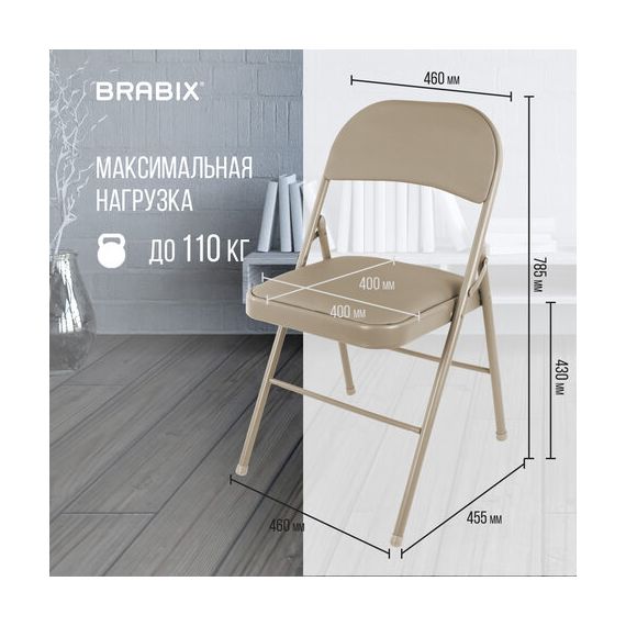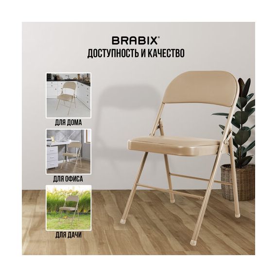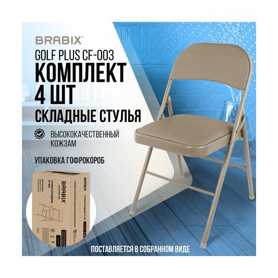Стулья складные BRABIX "Golf Plus CF-003" КОМФОРТ, КОМПЛЕКТ 4шт., бежевый каркас, кожзам бежевый, 533033