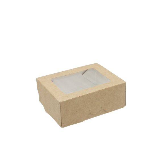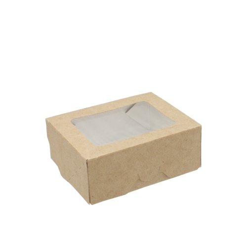 Контейнер бумажный "на вынос" 300мл 100x80x40мм TABOX С окном цвет Крафт/Белый OSQ (х25/450)