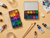 Краски, гуашь, палитра , кисти