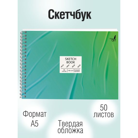Альбомы для рисования А5, 50л. Евроспираль по короткой стороне. Твердая обл, микротекстурирование, глянцевая ламинация. Бум. оф.120г/м2. SKETCHBOOK. Glued Paper