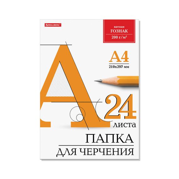 Папка для черчения BRAUBERG представляет собой набор из 24 листов ватмана производства ГОЗНАК КБФ. Папка для черчения включает отдельные листы рисовальной бумаги формата А4 (210х297 мм) плотностью 200 г/м2. Обложка выполнена из импортного мелованного картона плотностью 200 г/м2.