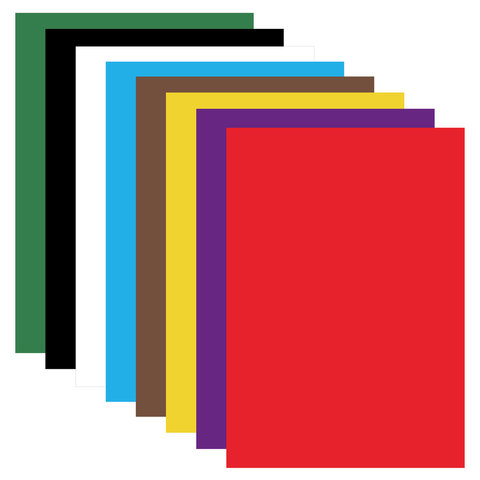Немелованный картон с улучшенной прокраской обладает плотностью 200 г/м2. Легко режется ножницами, сгибается и клеится. Внутренний блок состоит из 8 листов формата А4 (200х290 мм) и 8 цветов.