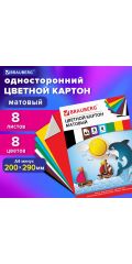 Картон цветной "Attomex. Зайчата" A4 (202x282 мм) матовый (немелованный) 190 г/м², 8 цв, 8 л, в плас