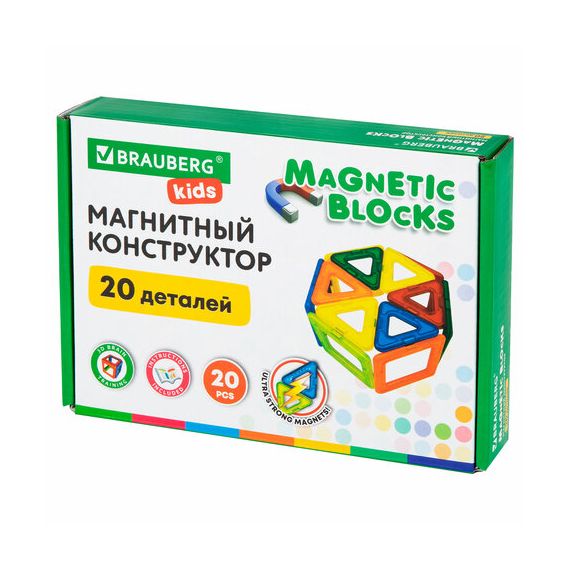 Магнитный конструктор MAGNETIC BLOCKS, 20 магнитных деталей, BRAUBERG KIDS, код 1С