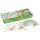 В набор входят 12 гипсовых блоков яйцевидной формы с динозаврами внутри, 12 инструментов для проведения раскопок (долото с кисточкой), 12 красочных двусторонних карточек с информацией о каждом динозавре из набора.