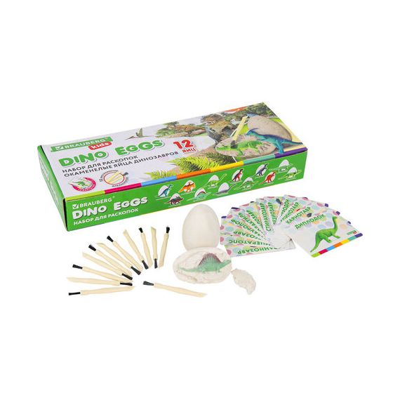Набор для проведения раскопок BRAUBERG KIDS – это необычный и увлекательный набор из гипсовых яиц с динозаврами. Набор поможет узнать не только как выглядели динозавры, но и изучить их особенности на ярких карточках. Все необходимые инструменты в наборе.