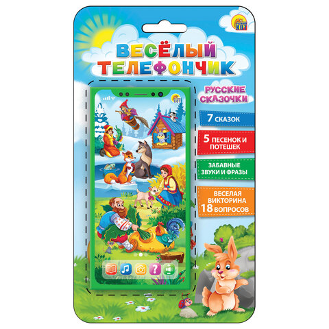 "ВЕСЕЛЫЙ ТЕЛЕФОНЧИК" научит ребёнка петь вместе с любимыми героями. В телефончике представлены 2 викторины, 36 песен. Работает в 4 режимах.