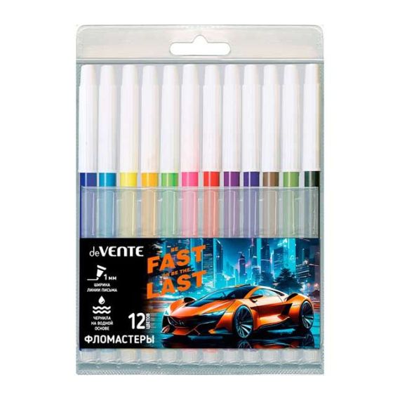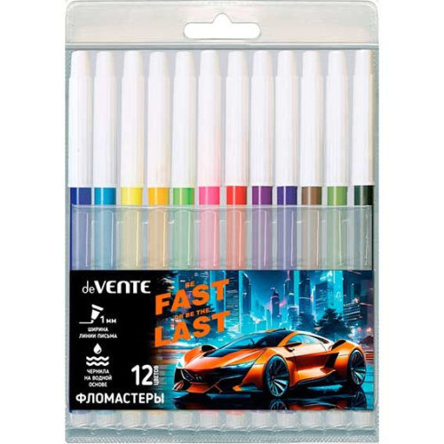 Фломастеры "deVENTE. Fast Or Last" 12 цветов с вентилируемым колпачком, в пластиковом блистере