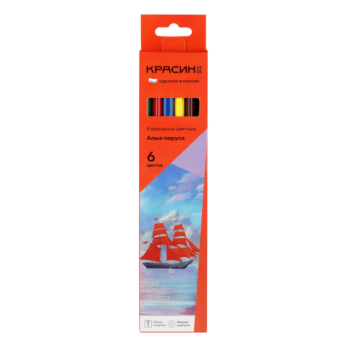 Карандаши цветные Красин "Алые Паруса", 06цв., трехгран., заточен., картон, европодвес
