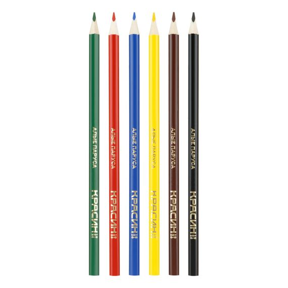 Набор цветных карандашей «Красин» серии «Алые паруса» – отличный помощник на уроках рисования и прекрасный инструмент для детского творчества. В наборе 6 цветов: зелёный, красный, синий, жёлтый, чёрный, коричневый. Корпус карандашей трёхгранной формы изготовлен из натуральной древесины липы. При производстве используется специальная технология склейки, которая увеличивает прочность и надежность заклейки стержня в карандаше, предохраняет его от повреждений при падении. Цветные карандаши легко и ровно затачиваются, не ломаются и не крошатся во время заточки и рисования. Благодаря высококачественному грифелю класса А карандаши мягко рисуют. Рисунки получаются яркими, насыщенными и устойчивы к выцветанию. Карандаши уже заточены и готовы к использованию. Они имеют диаметр 7 мм и длину 177 мм. Упакованы в плотную матовую картонную коробку с европодвесом. Яркая картинка с кораблём вдохновит на творчество детей школьного и дошкольного возраста.