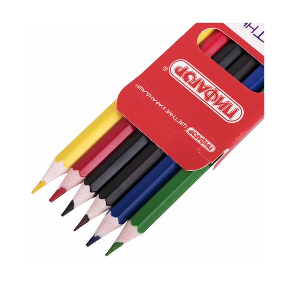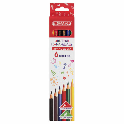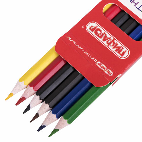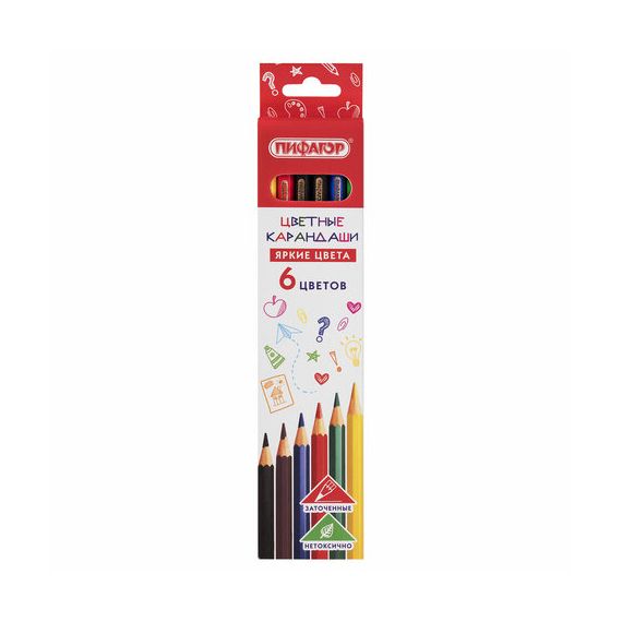 Набор состоит из 6 самых популярных цветов: красный, желтый, зеленый, синий, коричневый, черный. Шестигранная форма сечения корпуса позволяет карандашу не скатываться с поверхности стола во время занятий рисованием. Карандаши изготовлены из нетоксичного переработанного пластика. Корпус при разломе не образует острые края и безопасен для детей. Грифель легко затачивается и обладает повышенной прочностью. Все карандаши заточены и поставляются в картонной упаковке с европодвесом.