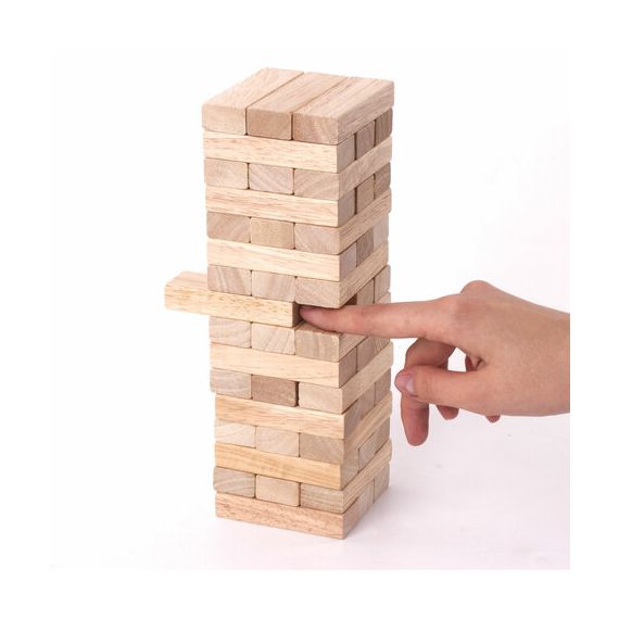 Суть игры проста: из одинаковых брусков необходимо построить башню, используя по 3 бруска в каждом ряду. Из основания башни игрокам предстоит по очереди вытаскивать по 1 бруску и перемещать их на верх башни так, чтобы она устояла. Игрок, в чей ход башня упадёт, проиграл. Выигрывает тот, кто последним поставил брусок, не обрушив башню.