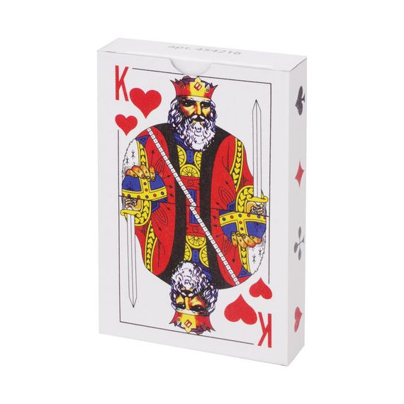 Колода состоит из 54 карт размером 8,5 х 5,5 см. Карты защищены влагоустойчивым пластиковым покрытием.
