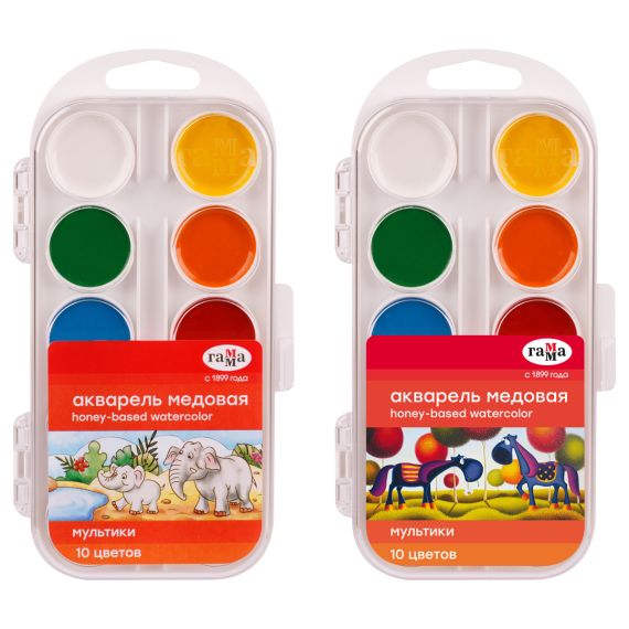 Акварель Гамма "Мультики" NEW, медовая, 10 цветов, без кисти, пластик. упак., европодвес