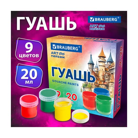 Гуашь классическая BRAUBERG идеально подходит для творчества и декоративно-оформительских работ. Хорошо наносится на бумагу, картон, дерево, стекло, керамику.
